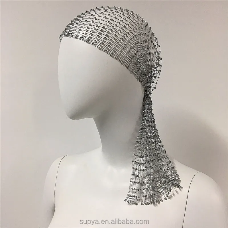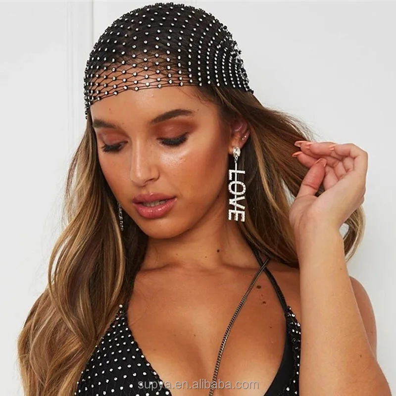 Women Hair Accessories Full Diamond Elastic Hair Band Fashion Personalized Mesh Headband Outdoor Carnival Party Rhinestone Durag